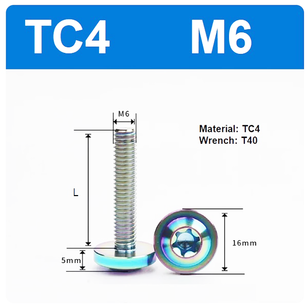 M6x45 Titanium Pan Head Torx Lightweight Gold Screw